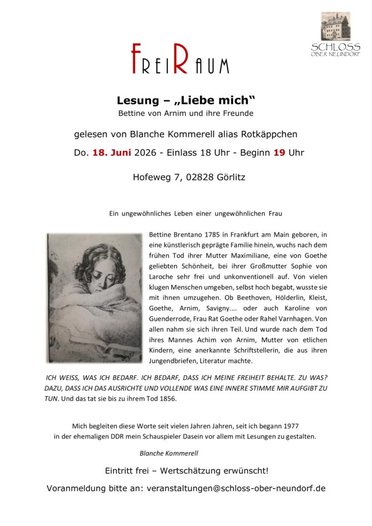 Voranmeldung bitte an: veranstaltungen@schloss-ober-neundorf.de